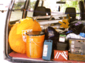 | コンパクト! ・・・ 車に積んでおけるサイズ。 テントは収納時直径約62cm、厚み約6cmと車にのせてもかさばらず、持ち運びが簡単。省スペースでの設置・保管が出来るため様々な現場に対応可能。 |