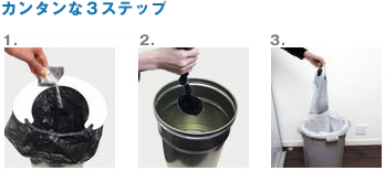| 一日完結! ・・・ 仕事終わりにゴミとして処分。 処理済の排便袋は、持ち帰り可燃ゴミとして処分。手間がかからず簡単で衛生的。(各自治体の条例に従って下さい) |