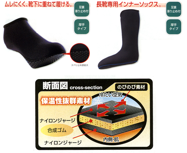 - 材質:インナーソックスショート(厚手タイプ2.0mm厚)